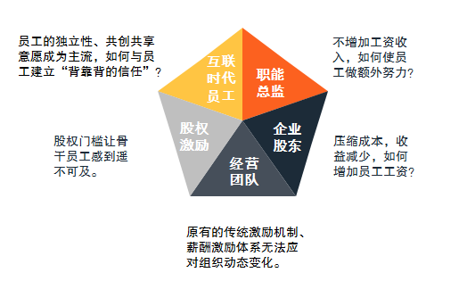 · 經(jīng)營(yíng)團(tuán)隊(duì)的兩難:由于市場(chǎng)定位、業(yè)務(wù)模式、組織體系、價(jià)值體系調(diào)整,原有的傳統(tǒng)激勵(lì)機(jī)制、薪酬激勵(lì)體系無(wú)法應(yīng)對(duì)組織動(dòng)態(tài)變化,難以對(duì)員工的真實(shí)貢獻(xiàn)有效回報(bào)與激勵(lì),企業(yè)需要員工先“免費(fèi)”付出,等待建立新激勵(lì)體系,員工憑什么愿意?